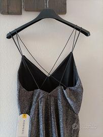 Mini abito/tuta corto, spalline strette incrociate sulla schiena, in lurex, Terranova, nuovo, mai usato. Perfetto per discoteca. Taglia S