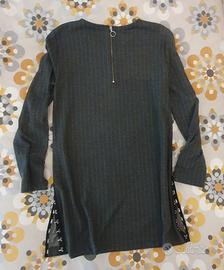 Mini abito casacca grigio gessata Zara, si apre lateralmente con ganci decorativi. Zip posteriore. Misura 80 cm dalla spalla. Come nuova.