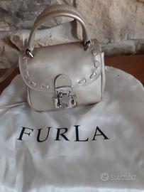 Mini bag in pelle beige leggermente lucida ed elegante con manico e tracolla
