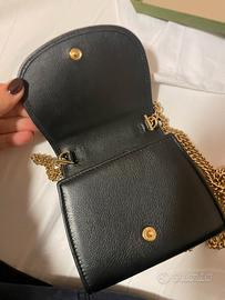 Mini borsa da donna Gucci, in pelle, di colore nero. Un pezzo unico selezionato con cura per il suo stile e la sua qualità. Descrizione: Mini borsa da donna. Dettagli: Confezionata con sacchetto antipolvere e scatola. Dimensioni: Lunghezza: 13cm. Larghezza: 4cm. Altezza: 13cm.