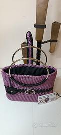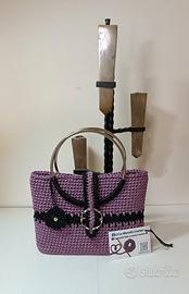 Mini Bag cordino Thai Crocus ed un tocco di Nero manici anello in acciaio 13cm fondo in ecopelle 20cm x 8cm chiusura con fibbia, foderata