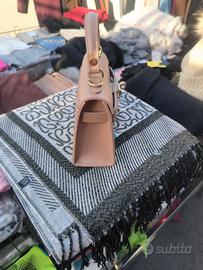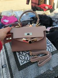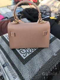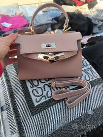 mini bag in vera pelle rosa cipria con tracolla, made in Italy