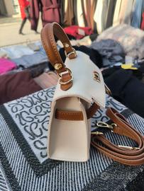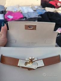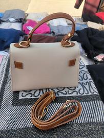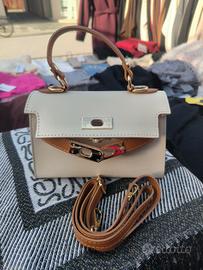 mini bag in vera pelle bicolore panna, cuoio con tracolla made in Italy