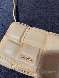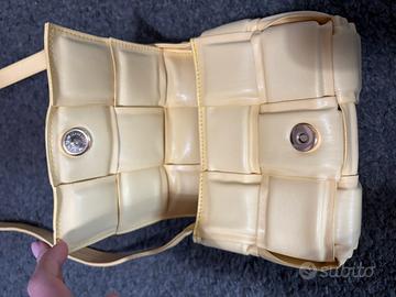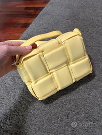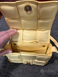 Mini bag gialla, elegante e di tendenza. Il design effetto intrecciato la rende originale e molto attuale, mentre la finitura liscia dona un tocco raffinato. Compatta ma funzionale, è perfetta per portare con te l’essenziale con stile. Dotata di tracolla regolabile, può essere indossata sia a spalla che crossbody. Ideale per completare look sia casual che più eleganti. Un accessorio versatile e ricercato, perfetto per chi ama distinguersi con semplicità.