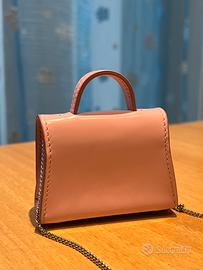 Vendo mini bag gioiello Salvatore Ferragamo originale, perfetta come custodia AirPods o micro bag decorativa. Realizzata in vera pelle rosa baby, Made in Italy, con tracollina a catena. Super chic e raffinata Ideale per: • AirPods • piccoli oggetti (chiavi, monete) • accessorio fashion da agganciare alla borsa Condizioni ottime Logo interno e numero seriale presenti (vedi foto).