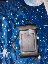Vendo deliziosa mini borsa a tracolla in similpelle nera, ideale come accessorio compatto e funzionale per chi ama viaggiare leggera. Organizzazione Interna: Nonostante le dimensioni ridotte, è super organizzata con un doppio scomparto a soffietto, una tasca centrale con zip per le monete e diversi slot per carte di credito e tessere. Chiusura: Pratica patta frontale con bottone magnetico argentato. Versatilità: Dotata di una lunga tracolla sottile rimovibile tramite moschettoni, può essere usata a spalla, incrociata o direttamente come portafoglio all'interno di una borsa più grande. Extra: Presenta un'ulteriore tasca piatta sul retro per un rapido accesso a biglietti o tessere. Dimensioni: Molto compatta (ideale per chiavi, rossetto e carte; attenzione: non adatta a smartphone di grandi dimensioni). Ottime condizioni, mai usata.