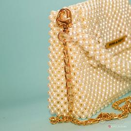 Elegante mini borsa artigianale in perline effetto perla color avorio, realizzata a mano con un raffinato equilibrio tra morbidezza e struttura. Pensata per valorizzare occasioni speciali e outfit quotidiani più ricercati, questa borsa presenta luminose perle effetto avorio e una tracolla a catena color oro removibile per uno stile versatile.
