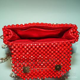 Mini borsa artigianale rossa in perline