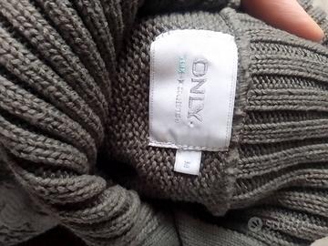 Mini dress/maxi pull ONLY taglia M-NUOVO- La foto purtroppo non rende questo stupendo abitino o maxi maglia ONLY taglia M Colore tra il grigio scuro e il verdone È lavorato in cotone pesante come a maglia: liscio sul retro e dal seno in giù, a trecce sul corpetto. È a maniche corte, ma è per tutte le stagioni: si può indossare in inverno sopra un dolcevita o una maglia pesante e con leggings pesanti oppure in primavera/autunno. È nuovo mai indossato, comprato perché mi piaceva molto ma mai indossato perché non mi vedevo e ora non mi va più. Stupidamente ho tagliato l'etichetta interna perché molto lunga ma assicuro che è cotone pesante e il tessuto è cedevole per adattarsi alle forme del corpo.