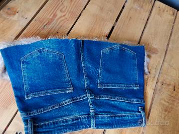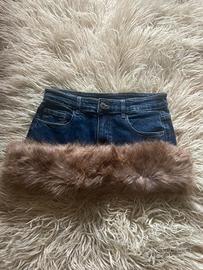 Mini gonna super fashion in denim con bordo in pelliccia marrone 🤎