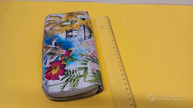 Mini pochette, borsellino floreale piatto, portafoglio, porta documenti donna, borsellino custodia, esterno con disegni a fantasia floreale - altezza cm 20, larghezza cm 11, spessore cm 4, con due cerniere principali, la prima sezione con due vani, la seconda sezione con due vani separati da tasca interna con cerniera - usato solo qualche volta, stato eccellente - come da foto - [qw 9519] -