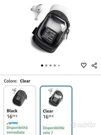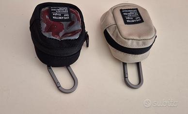 Mini pochette portachiavi, porta auricolari e porta monetine. Moschettone presente per gancio borse e zaini. Uno è di colore beige, l'altro nero e trasparente. 7€ cadauno.