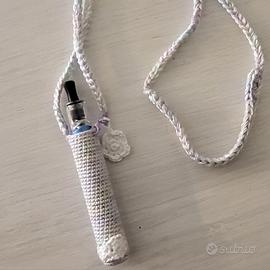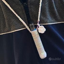 Cerchi un modo unico per non perdere più i tuoi piccoli oggetti quotidiani? Che sia un rossetto, un burrocacao o un dispositivo elettronico, questa mini custodia a tracolla è l'accessorio che unisce utilità e uno stile magico. Realizzata interamente a mano con la cura dei dettagli che solo l'artigianato sa offrire. 💖 PERCHÉ È UNICA: Design Esclusivo: Lavorazione con filato misto (cotone, poliacrilico e fibra metallizzata) che crea sfumature pastello e riflessi luminosi ad ogni movimento. Comfort h24: Il cordone (80 cm circa) è dotato di una speciale fascia piatta salva-collo sulla nuca, studiata per distribuire il peso e non segnare la pelle. Ideale da indossare tutto il giorno. Dettagli Bijoux: Arricchita da charms fatti a mano (nuvoletta e stellina) in puro cotone bianco, agganciati a un pratico moschettone lilla che puoi personalizzare con i tuoi ciondoli preferiti. Protezione Soft: La trama compatta protegge i tuoi oggetti da graffi e urti, evitandoti di cercarli continuamente sul fondo della borsa. 📏 DETTAGLI TECNICI: Materiali: Misto Cotone/Poliacrilico/Lamé (corpo), 100% Cotone (applicazioni). Chiusura: Moschettone lilla multiuso. Stile: Aesthetic / Kawaii / Unicorn. ⚠️ Nota: L'inserzione riguarda esclusivamente la custodia artigianale. Eventuali oggetti inseriti nelle foto sono a puro scopo illustrativo.