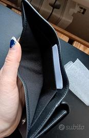Mini portafoglio in pelle di vitello con logo Balenciaga in rilievo davanti, portamonete con bottone automatico, scomparto per banconote con chiusura con bottone automatico, tre scomparti per carte di credito