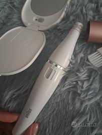 Braun Face Spa, Depilatore Donna Epilatore Viso, Accessori Inclusi, Specchio e Pochette, Resistente all'acqua, Alimentato a batteria.