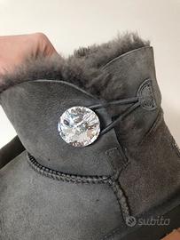 Vendo mini Ugg colore grigio con dettagli Swarovski misura 38 (veste fino ad un 39) usati (segnalo che ci sono dei segni come da ultime 2 foto, e la gomma sul tallone è un po’ consumata) ma tenuti beni a 80 euro (prezzo retail 229 euro)