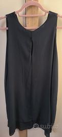 Vendo semplice ma elegante e raffinato mini abito blu scuro smanicato adatto alle più svariate occasioni sia formali che informali. Va bene sia portato con dei jeans, con dei leggins o delle semplici calze. Vendo causa errata taglia. Taglia L. Materiale sintetico molto estivo. NON stirare. Preferibile consegna a mano. Spedizione a carico dell'acquirente. NO scambio.