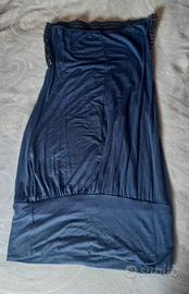 Mini abito senza spalline in maglina color avio con parte superiore davanti con paillettes lunghezza 65cm usato 2 volte taglia xs