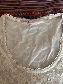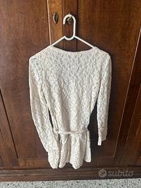 Miniabito con maniche lunghe in pizzo bianco con interno in stoffa. Taglia 44. Portato pochissimo.