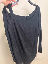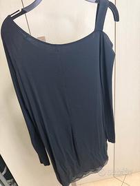 Indossato forse due volte. Davanti ha doppio tessuto don decorazione tipo pizzo, dietro e’ liscio, monospalla. Vestibilita’ s-m
