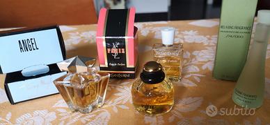Miniature di profumi, Paris (Ysl), Angel (Tierry Mugler), Y(Ysl), Relaxing Fragrance (Shiseido).