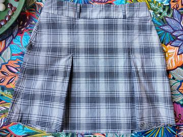 Minigonna fantasia righe tipo scozzese, grigio/nero/bianco lunga circa 40 cm. Marca Promod.