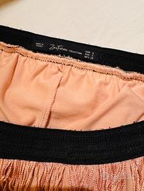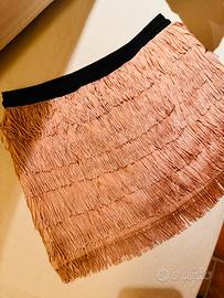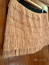 Minigonna da ragazza con frange colore albicocca/rosa pastello.