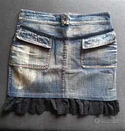 MiniGonna di jeans blu con gala nera donna tg s