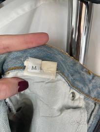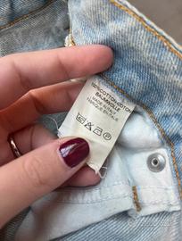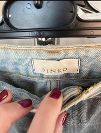 Minigonna in denim chiaro Pinko con strappi e decori. Indossata pochissimo.