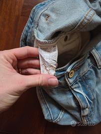 4 tasche anteriori, non tasche posteriori. Effetto strappato di fabbrica