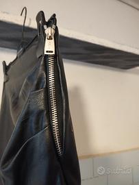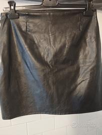 minigonna in ecopelle taglia L con piccolo spacco sul davanti come da foto e chiusura laterale con cerniera come da foto