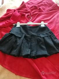 Minigonna nera Stefanel lana vergine con 2 tasche laterali finte e fascia media con mini cerniera lampo e poi larga con con pieghe morbide davanti e dietro vintage anni 90 taglia 42