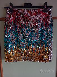 Minigonna Shein in paillettes colorate, con cerniera laterale.