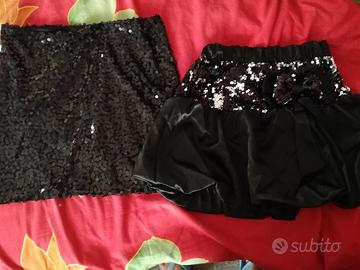 Vendo 2 minigonne nere con paillettes, nuove e molto d'effetto, taglia 42/44 a euro 20, più una gonna jeans originalissima con volant e balze fantasia (euro 15), una gonna rossa a quadri tipici scozzese (euro 15), un pantaloncino di raso nero di marca, taglia 42, con tasche, zip e bottone (euro 20) e pantalone lungo nero di raso, bellissimo, taglio dritto a sigaretta, di marca (euro 25). Tutta roba nuova. Solo interessati. Zona Pescara.
