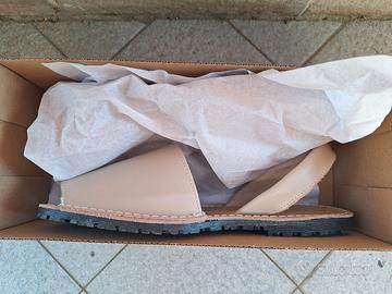 Menorquinas Huran comprate in Spagna, nuove mai indossate come si vede dalle foto della suola. Color beige, numero 38, made in Spagna, scatola originale.