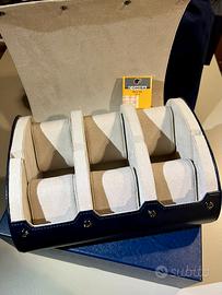 Vendo elegante custodia Mirage Luxury Travel per 6 orologi di colore blu, ideale per conservare e trasportare i tuoi segnatempo in totale sicurezza e stile.