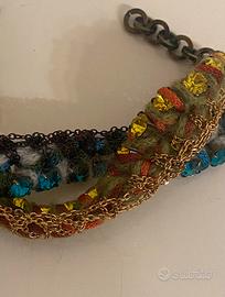 Raro bracialetto realizzato una parte ad uncinetto multicolore con strass che regalano una luce delicata. Praticamente nuovo!