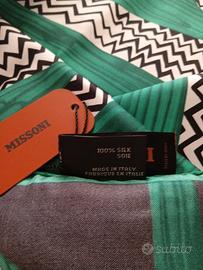 Vendo foulard MISSONI ancora con l'etichetta e nella busta originale, misura cm 90x90 circa. È in seta 100% , colore nero/bianco/verde, MAI indossato. Prezzo 90 euro, consegna a mano Treviso e Vicenza, se spedito spese a
