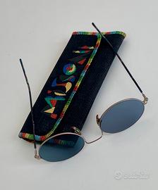 * Design: Montatura ovale sottile in metallo con lenti scure e aste che richiamano i motivi colorati tipici del brand.