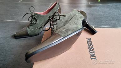 Eleganti francesine Missoni originali nuove tg 36. Assolutamente di classe nel color verde salvia di finissima pelle. La qualità ed esclusività del brand non hanno bisogno di presentazioni