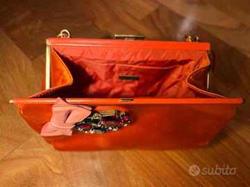 Pochette in satin con logo e decorazione Usata pochissimo Completa di dustbag originale