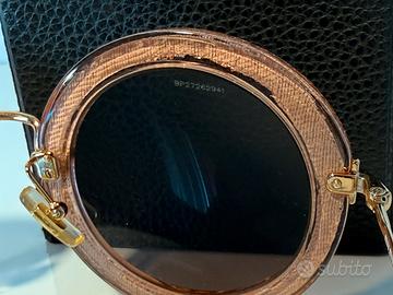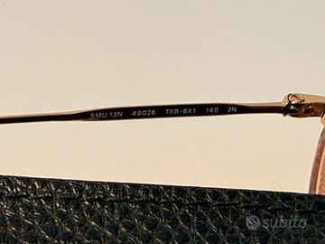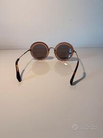 L'Accessorio Iconico per un Look da Diva Se cerchi un pezzo che non passi inosservato, questi Miu Miu SMU 13N sono il mix perfetto tra opulenza e raffinatezza. Caratterizzati dalla celebre montatura rotonda oversize, questo modello è una vera icona di stile, amato da influencer e amanti del luxury vintage. Caratteristiche Uniche: Design Prezioso: Montatura in acetato trasparente rosa cipria, impreziosita da una tempesta di micro-cristalli scintillanti applicati frontalmente che incorniciano lo sguardo con una luce incredibile. Dettagli di Lusso: Aste ultra-sottili in metallo oro rosa con logo Miu Miu inciso e terminali tartarugati per un comfort impeccabile. Lenti Alta Qualità: Lenti sfumate (Cat. 2N) che offrono una visione nitida e una protezione chic dai raggi solari. Autenticità Certificata: Seriale di sicurezza inciso sulla lente destra (BP27282941) e scritta "Made in Italy" sull'asta. Specifiche Tecniche: Modello: SMU 13N Colore: TKB-6X1 (Rosa/Oro Rosa) Misure: 49□26 - 140 (Calibro - Ponte - Asta) Condizioni e Set Regalo: Gli occhiali sono in condizioni eccellenti, mantenuti con estrema cura. Il set è completo e originale (come da foto): Custodia rigida iconica in pregiato velluto rosa antico. Dustbag (sacchetto) in velluto coordinato con logo.