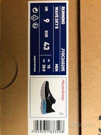 Mizuno Wave Sky 8 Running Shoes EU 43, Black and Sky Blue, New shoes, never tried, received the wrong number. Sizes: US 10, UK 9, EURO 43, BRA 42, JP 28.0. The length is 28.0 cm.