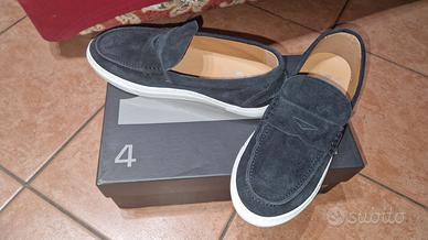 Eleganti mocassini in camoscio colore blu. Manifattura eccellente!