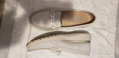 mocassini pelle bianca tipo serpente usate pochissimo forse 3 volte scarpe comodee ben tenute. vendo per non utilizzo numero 40