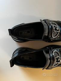 Mocassini in pelle lucida neri di Liujo