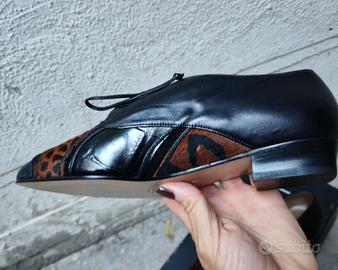 Mocassini con lacci in vera nappa di vitello di colre nero con inserti in cavallino maculato