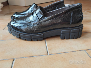 Mocassini donna misura 42, in perfette ed ottime condizioni. Materiale in pelle verniciata, suola in gomma. Usati veramente pochissimo.