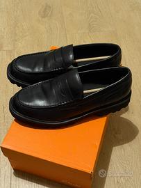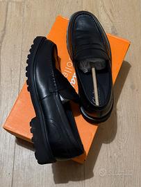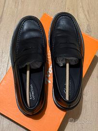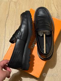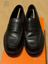Vendo mocassini Clarks modello "Berwick Lo" in vera pelle nera. Si tratta di un modello dallo stile contemporaneo, caratterizzato da una robusta suola a carrarmato che offre ottima aderenza e un look grintoso. Le scarpe sono in condizioni eccellenti, indossate solo una volta. Come si vede dalle foto, la pelle è perfetta e non presenta pieghe d'usura. • Modello: Berwick Lo (Clarks Collection) • Taglia: 44 EUR (UK 9 ½) • Calzata (Fit): G (Calzata standard/comoda Clarks) • Colore: Black Leather (Nero) • Stato: Pari al nuovo, con scatola originale inclusa. Scarpa molto versatile, perfetta per l'ufficio o per il tempo libero, estremamente comoda grazie alla tecnologia della suola Clarks. Prediligo consegna a mano su Bologna