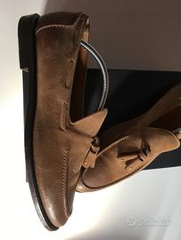 Splendidi mocassini marchio Regain fatti a mano in pelle scamosciata trattata color sabbia/beige, portati solo una volta, n. 8 (it. 42) con scatola originale, vendesi: ottimo affare, scarpe da oltre € 299,00!!!